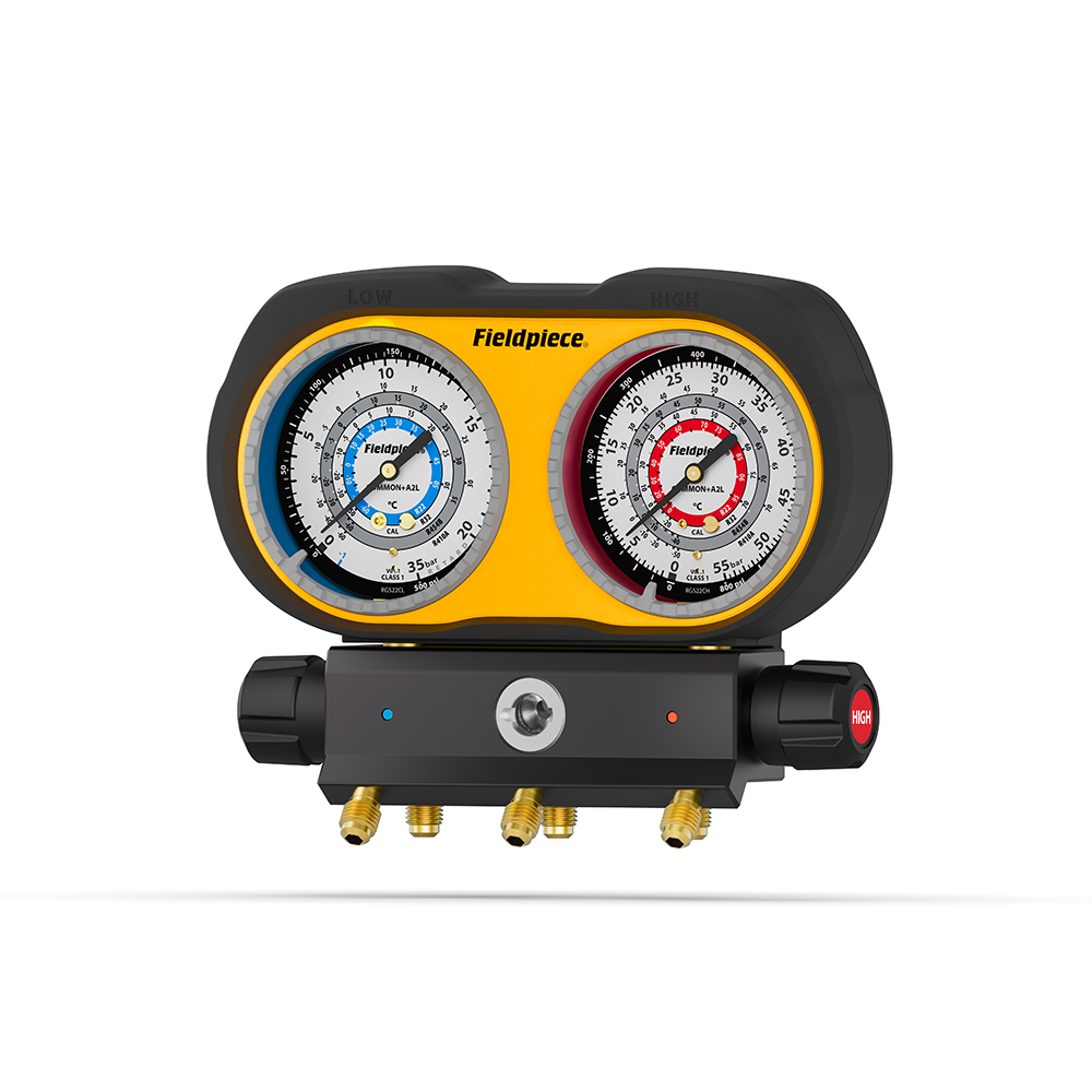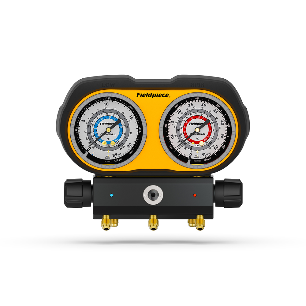 Fieldpiece analogue manifolds are rugged and dependable tools, designed to support you through every stage of the job: from system diagnostics to refrigerant recovery, evacuation, pressure testing, and charging.