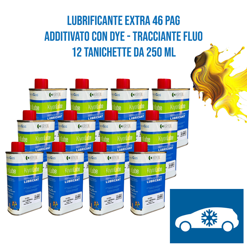 KryonLube EXTRA 46 PAG AUTO Lubricant with fluorescent dye additive - 12 x 250 ml metal canister