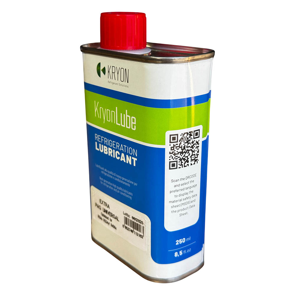 KryonLube EXTRA POE 100 BEV Lubricant - Metal canister 250ml. GeneralGas' experience in the world of refrigerant gases and a constantly evolving study by its laboratories have led to the creation of the new KryonLube lubricant line.