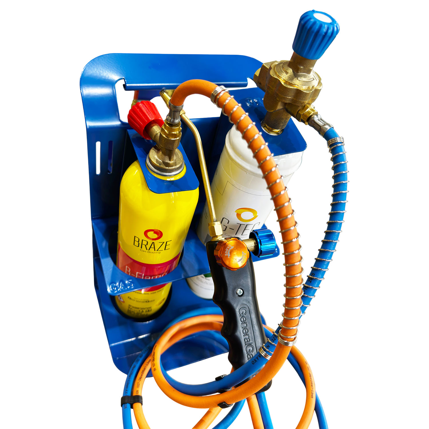 MINIFLAME is a compact, powerful and efficient brazing kit and is especially suited for brazing operations in refrigeration, air conditioning, hydraulic, jewellery, and hobbies. The kit is mounted on a solid metallic support provided with a handle to ease transportation. The support is sloping to avoid overturning and is provided with tank block devices.
